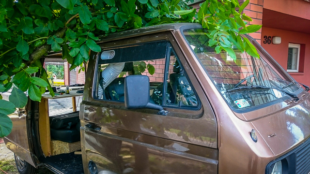 …tak naprawdę po roku użytkowania VW T3, doszedłem do wniosku, że uwielbiam spokojną jazdę tym samochodem, przez górskie, czy inne wiejskie drogi, daleko od zatłoczonych i głośnych autostrad. Uwielbiam przy prędkości przeważnie nie przekraczającej 80km/h opuścić szyby i wpuścić do środka świeże leśne powietrze. Ostatecznie doszliśmy z Anią do wniosku, że klimatyzacja nie jest dla nas taka ważna i da się bez niej żyć. W Planach mamy natomiast inwestycje w przesuwne szyby środkowego rzędu i szyberdach, który będzie się dało całkowicie otwierać, bo ten który mamy teraz, daje się tylko delikatnie uchylić.