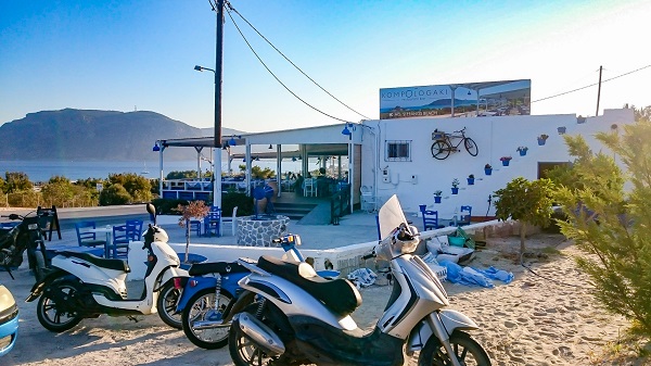 Restauracja Kompologaki położona niedaleko ruin starożytnej bazyliki, o której wspomniałam wcześniej, zachęca wyglądem, ale jeśli macie inny wybór, to z niego skorzystajcie. Jedzenie co prawda nie jest złe, ale świeżość niektórych potraw można zakwestionować. Na pewno nie zamawiajcie wyszukanych dań ani owoców morza.