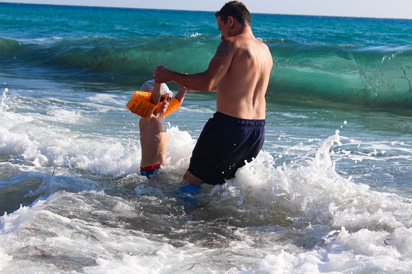 A jeśli chodzi o plaże to radzimy szukać jak najmniejszych i jak najbardziej ukrytych. My przeżyliśmy niezłą przygodę próbując się dostać do Kavo Paradiso Beach. Inni turyści zawracali. My nie poddaliśmy się, chociaż trasa wydawała się niemożliwa do przejechania. Jednak za krytycznym zakrętem, który wyglądał jakby droga kończyła się przepaścią, zobaczyliśmy sporej wielkości parking, na którym stały nawet zwykłe osobówki. Skoro oni dojechali, to każdy dojedzie. Rajska plaża z drobnym piaskiem, falami i stosunkowo ciepłą wodą. Dno opada łagodnie, a na plaży nie spotkacie tłumów. Kawałek raju na ziemi. Warto. Naprawdę warto!!!