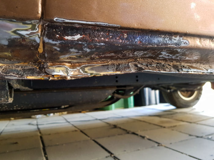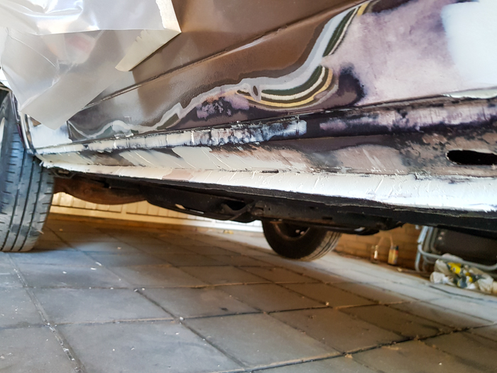 Masakra. Otworzyłem browara i usiadłem na chwilę. Zamiast małej zaprawki, miałem przed oczyma błotnik i próg nadające się tylko do wymiany, oraz panel nad progiem, którego dolna część była pokryta dość głębokimi wżerami na całej jego długości. Sam próg również wyglądał wątpliwie.