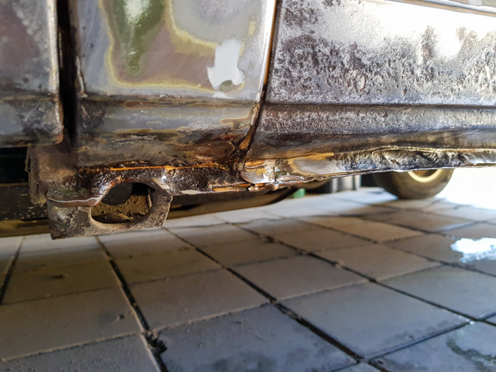 Wracając do rdzy, bałem się cięcia busa i zabierałem się do tego jak pies do jeża. Na szczęście 😉 ruda wyłazi już wszędzie dokoła i na rozgrzewkę mogłem wybrać jakieś „łatwiejsze” do ogarnięcia miejsce. Padło na łączenie błotnika po stronie kierowcy. Nic strasznego, troszkę niewielkich kwiatków.