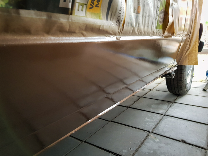 Po wyschnięciu Brunoxa zakitowałem szpary masą uszczelniającą Innotec SPRAY-SEAL HS-m . Droga jak pierun i chyba robi dokładnie to samo co często polecany Novol STP FLEX. Novol jednak ciężko było znaleźć w Holandii. Jeśli już go znalazłem to kosztował tyle co Innotec, czyli czterokrotność polskiej ceny. W ogóle, jeśli chodzi o materiały, to chyba dalej opłaca się je targać z Polski. Często, wliczając podwójne koszty wysyłki, jestem w stanie oszczędzić jakieś 30%.