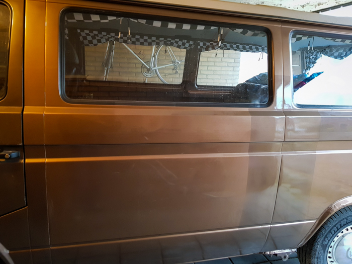 Ponieważ Paździoch był malowany przez poprzedniego właściciela, nie miałem pojęcia jaki jest kod lakieru. Wiedziałem tylko, że nie jest to raczej żaden z kolorów z palety Volkswagena. Jak by tego było mało, malowali go chyba jakimiś zlewkami i gołym okiem widać było na nim przynajmniej 4 odcienie brązu metallic. Jeśli jesteś ciekaw i masz chwilę wolnego czasu, zapraszam do naszej galerii lub starszych wpisów o naszym VW T3. Na pewno trafisz na zdjęcia, na których widać te różnice koloru.