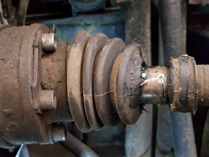Rozdarta osłona przegubu, to jak wiadomo, śmiertelny wróg przegubu, trzeba więc było zakasać rękawy. Oględziny reszty osłon wykazały, że rozwalona co prawda była tylko ta jedna, ale reszta była równie wiekowa jak tamta i sparciała. Zdecydowanie, wszystkie cztery osłony nadawały się do wymiany.