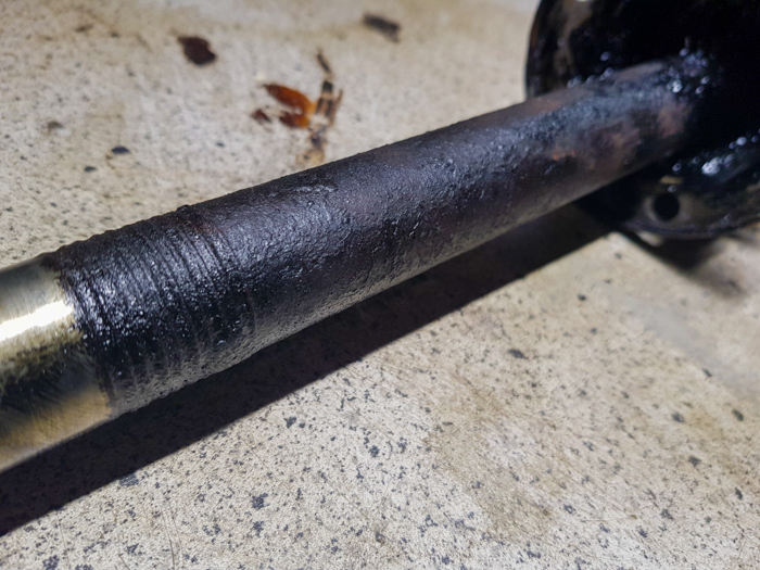 Czas oczekiwania na paczkę z przegubami postanowiłem poświęcić na odnowienie wału półosi. Nie wiedziałem do końca co będę z nim robił, ale zakładanie go w takim stanie w jakim go ściągnąłem, wydawało mi się nie fair w stosunku do Paździocha. Uknułem więc misterny plan wyczyszczenia, zabezpieczenia antykorozyjnego i pomalowania wału ku radości naszego VW T3.