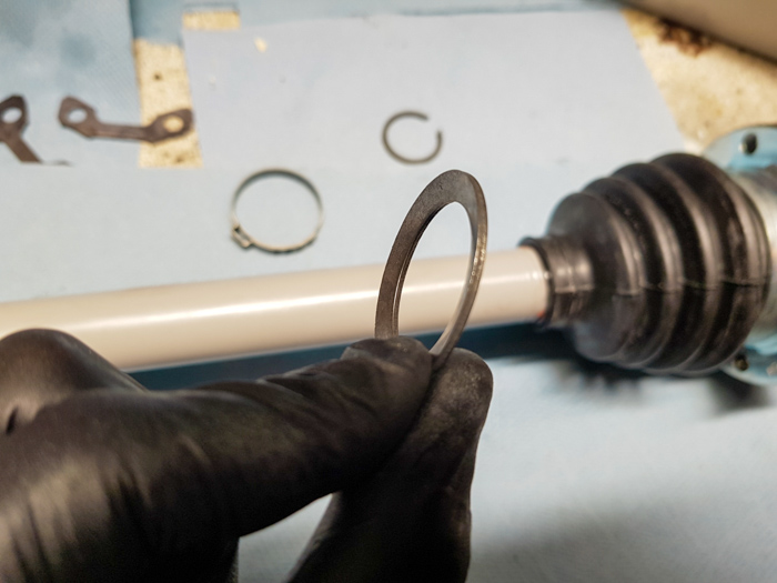Drugi punkt nad którym musiałem chwilę pogłówkować to podkładka talerzowa załączona do nowego zestawu przegubów. Nie było takich podkładek na moich półosiach, nie wspomnieli o nich w żadnej z 3 posiadanych przeze mnie książek. W sumie to nie miałem jej nawet gdzie na tą półoś wcisnąć. Znalazły więc swoje nowe miejsce na półkach przepastnych magazynów w mojej tajnej bazie. Może kiedyś ktoś mi powie gdzie je wcisnąć…